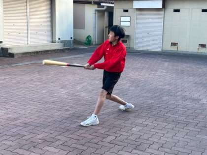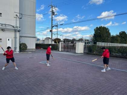 2チームに分かれて、練習しています。中で素振りの練習をしています。