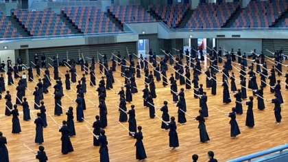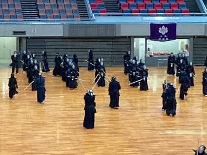 剣道部(同好会)は中央体育館で行われている寒稽古(合同練習)に参加しています。