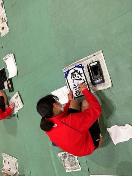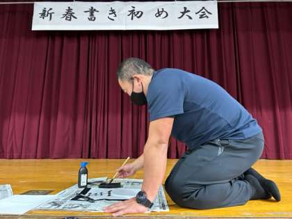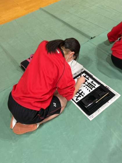 先生も真剣に書いています!井口先生の抱負は「至誠」です。