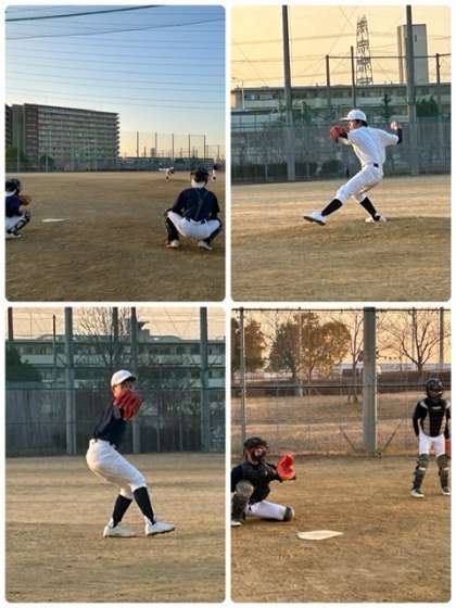 川辺グラウンドのようすです! バッテリーを組んで投球練習です!