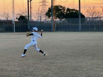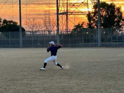 夕焼けの中、全力プレーです!