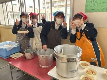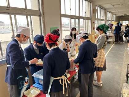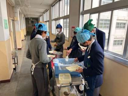 みんなで協力して配膳します。協力するって楽しいですよね。班員もとても素敵な笑顔ですね!!