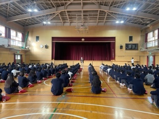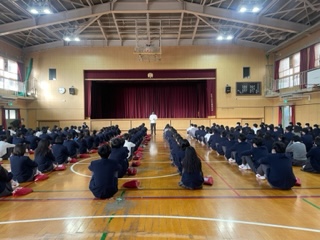 また、柳谷先生から服装や見た目のお話がありました。中学校生活に相応しいさわやかな姿であってほしいです。受験や卒業式も控えていますので、より一層の見た目が目立つことの無いように、またルールもありますので、しっかり守って過ごしてくださいとのお話がありました。