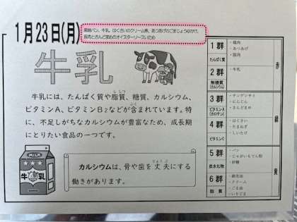 牛乳には、タンパク質や脂質、糖質、カルシウム、ビタミンA、ビタミンB2などが含まれています。特に、不足しがちなカルシウムが豊富なため、成長期に摂りたい食品の1つです。