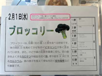 からだの抵抗力を高めてかぜを防ぐビタミンCが多く含まれています。また、のどや鼻の粘膜を健康に保ち、目のはたらきをよくするカロテンや貧血を防ぐ鉄、骨や歯を丈夫にするカルシウム、腸の調子を整えて便秘を防ぐ食物繊維なども豊富です。
