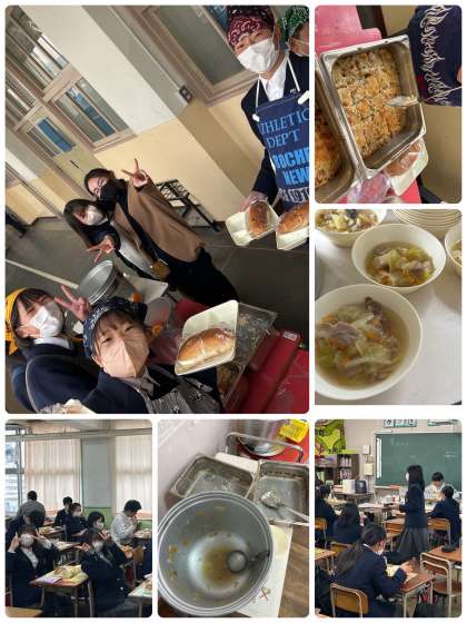 みんなでしっかり協力して準備をしたあとは、いただきます!今日は3年2組を見学しました。みんな優しさあふれる良い雰囲気で準備していました。他学年を巡回していると1年1組、5組もに食缶が空になっていました。先日、お伝えした3年生ほどではありませんが、苦手なものも頑張って、みんなが協力して食べていました。