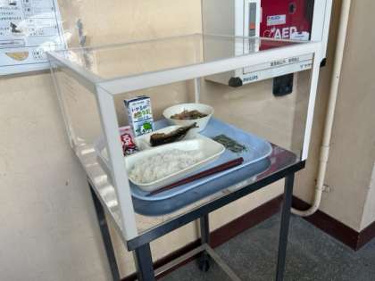 給食見本ケースを作ってくれた感謝の心をもって、「今日の給食はなにかな?」って見てもらえると嬉しいです。