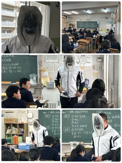 1年4組は、節分から遅れた「鬼」が襲来してきました。鬼は剣を傘にかえ、ぶるぶると震える手で「残さず食べましょう」と優しく声をかけていました。みんなが想像以上に優しく対応してくれるので、しっかり食べているようすを見た鬼は声をかけられることなく山に戻っていきましたとさ。