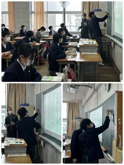 先日の百人一首大会あけの週末の2年生です。授業中の雰囲気がなんだかとてもいい感じですね!積極的に発表したり、難しい問題を友達が解いたら「すごい」って声も!言われてる側からすると嬉しいですよね。頑張る人を応援できることは、とてもかっこいいです。頑張ってください!