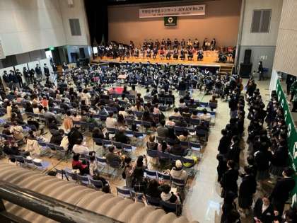 各学校の軽音学部やコーラス部、吹奏楽学部の発表の後、全体合奏・合唱を行います。さすがこれだけの人数。音の圧が強烈でした。