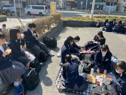 写真は全体合奏・合唱と昼食の様子です。一日中暖かく、天気にも恵まれ、過ごしやすい1日でした。