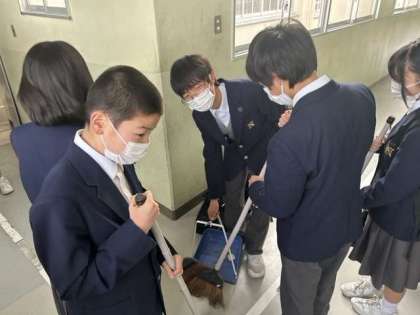 掃除の時間は、廊下でホウキでかき集めたチリなどを、みんなで回収しています。当たり前の習慣ですが、まじめに取り組んでいます!その姿勢はとても大切ですね!