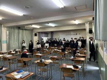 廊下に響き渡るきれいな歌声に誘われて音楽室に向かうと、卒業式に向けて歌の練習をしていました。