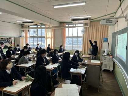 数学の授業は受験問題にチャレンジでした。難問を解けた生徒には拍手が起こるなど、落ち着いた状態で学習しています。