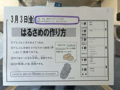 給食では、じゃがいものでんぷうで作ったはるさめを使っています。
