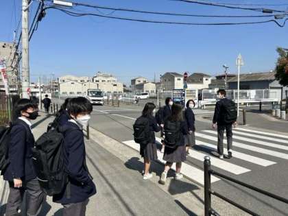 先ほど一般選抜の出願に各高校で集まって集団で出発しました。