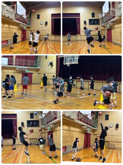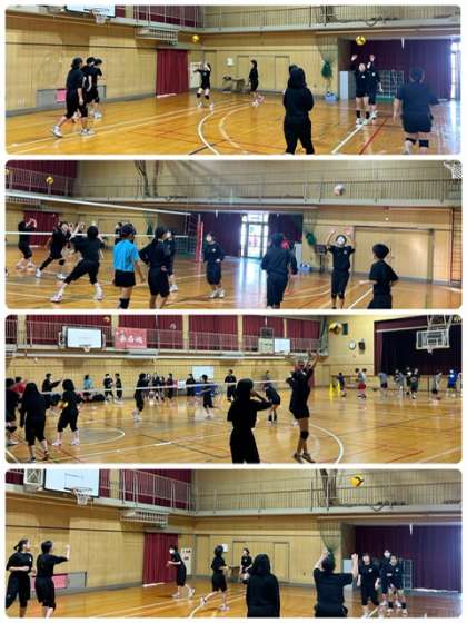 体育館では男子バスケットボール部、バレーボール部が活動しています。