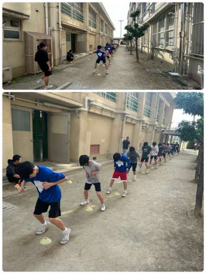 水分補給をしっかり行い、声をかけながらしっかり練習しています。