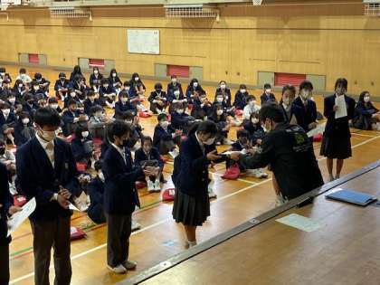 昨日行われたドッヂボール大会の表彰から始まりました。