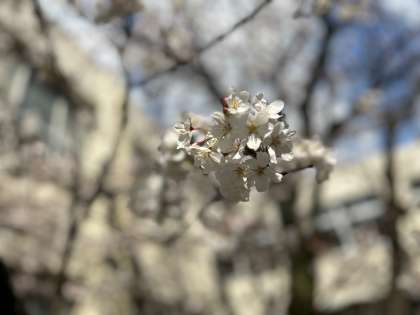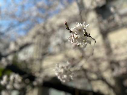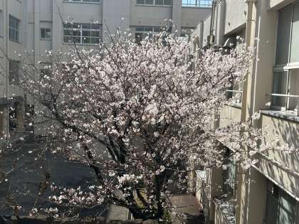 中庭の桜は現在、6分咲きくらいです。
