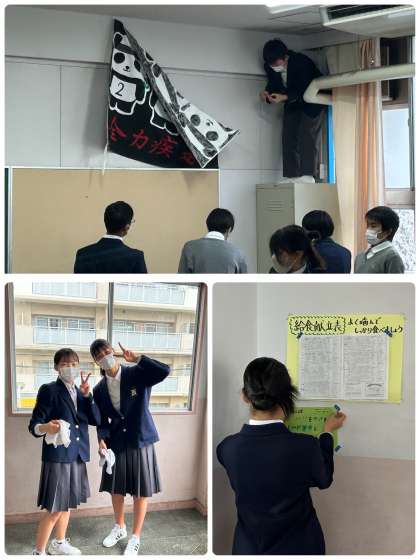 1年間使わせてもらった教室や校舎内を、協力しながらピカピカにします。感謝の気持ちをもって掃除します。丁寧に掃除できていますね!