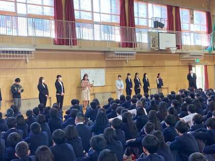 南校長先生より、3月末で異動になった先生、また新しく着任した先生の紹介があり、その後、各学年の担任・所属の先生の紹介も行われました。
