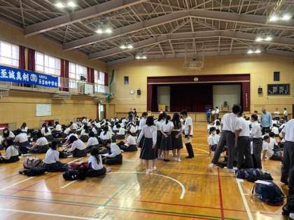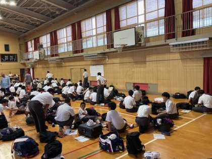 明日からの修学旅行に向けて、3年生は昼食後、準備物の確認を行いました。