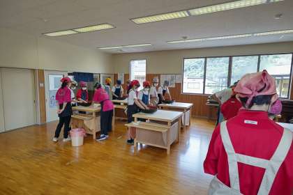 山々に囲まれた太田地区で育てられた蕎麦を使って、そば打ちを体験。
