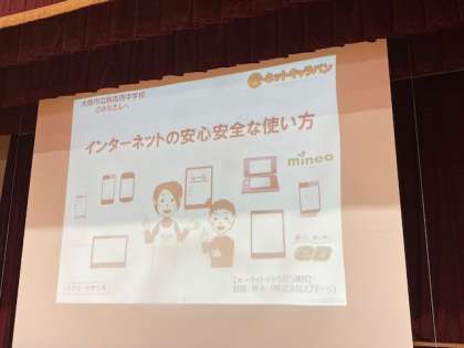 今日は各学年、情報モラル教室としてeネットキャラバンの講師の方をお招きして講義を聞くことができました。