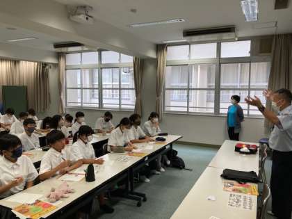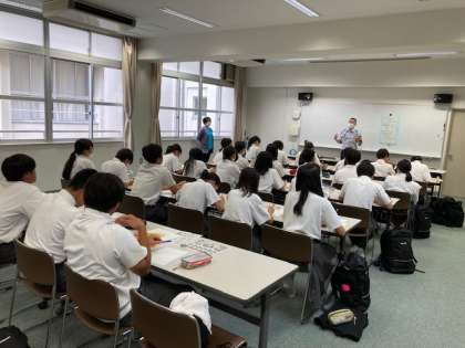 平野消防署の方にお越しいただき、緊急時のAED対処の仕方や熱中症予防へのお話を伺うことができました。