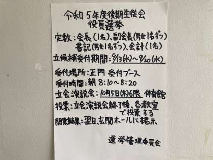 明日から1週間、後期生徒会役員の立候補期間が始まります。