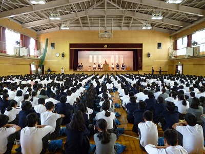 10/8、後期生徒会役員選挙投票でした。それに先立ち選挙管理委員司会のもと、立候補者立ち合い演説会を行いました。話す側も聞く側も少し緊張した印象を受けましたが、しっかり取り組めていました。