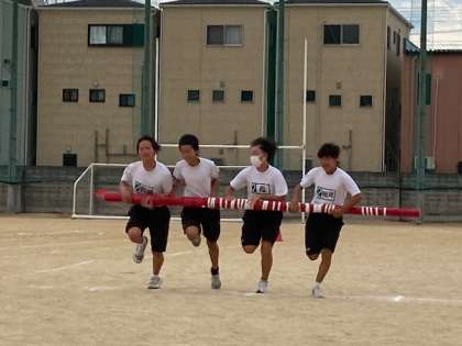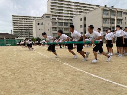 2年生は体育委員の大きな掛け声の体操に始まり、学年種目も回を重ねるごとにタイムが縮まっています。