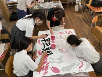 間に合うか心配されていた学級旗も、完成が見えてきました。