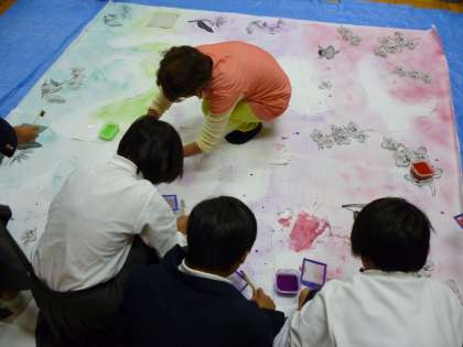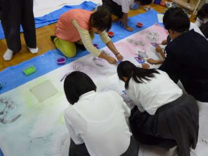 本日、1年4組が文化発表会の展示作品のスパッタリングの作業をしていました。文化発表会の本番に向けて各学年や各クラスで着々と取り組みが進んでいます。