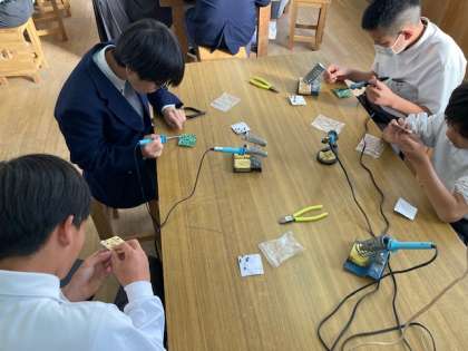 2年生の技術科の授業では、時計の基盤のはんだ付けを行なっています。