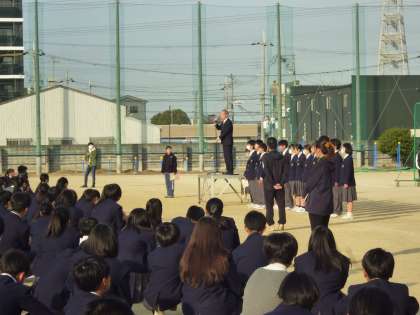 本日の全校集会では、まず各学年や委員会の代表さんから、今月の目標の発表がありました。その後、校長先生がお話をされました。