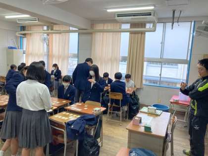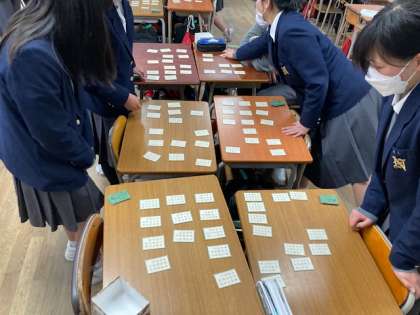 2年生は来週の百人一首大会に向けて、各クラスのチームをランダムに組み合わせてクラス交流戦を行いました。