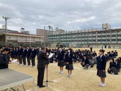 これまで表彰できないでいた部活動の表彰(卓球、陸上、バドミントン等)が一斉に行われました。