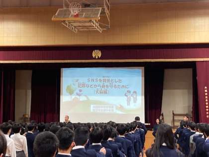 平野警察署生活安全課・少年係の職員の方にお越しいただき、「SNSを背景とした犯罪などから身を守るために(大麻編)」をテーマにお話しいただきました。