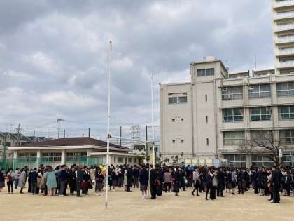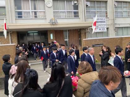 正門の外までたくさんの方に見送られて、本日長吉西中学校54期生が卒業していきました。