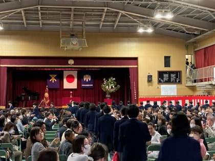 新入生、保護者の皆さま、また多くのご来賓の皆さまにもお越しいただき、賑やかな雰囲気の中、入場も完了しました。