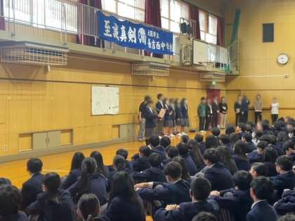 また新入生である一年生と在校生である二年生と三年生の顔合わせとして対面式が行われ、それぞれの代表生徒よりお話がありました。本日よりチーム長吉西として一丸となって頑張っていきましょう!