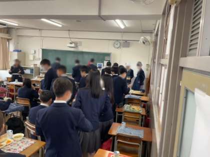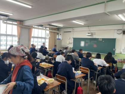 本日のメニューは、おさつぱん 牛乳 じゃがいものミートグラタン レタスのスープ みかん です。一年生にとっては中学校で食べるはじめての給食ということもあり、準備や配膳に苦戦していました。きっとすぐに慣れると思います。一方で、ニ年生と三年生は手際良く準備や配膳ができていました。はじめての給食はとても美味しく、たくさんおかわりする人もいました。美味しい給食をありがとうございます。