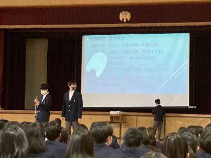 新入生の部活動選びのために、6限は部活動紹介が行われました。