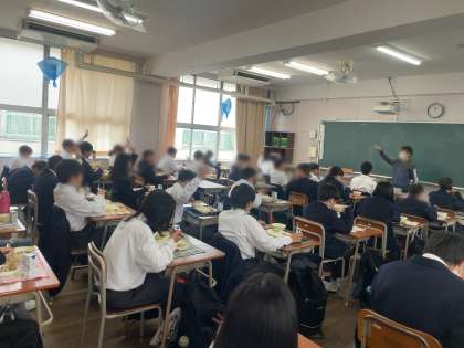 本日の給食は「ご飯、牛乳、鶏肉のからあげ、中華スープ、チンゲンサイともやしの甘酢あえ」です。教室を回っていると、「おかわり」に手を挙げている生徒の皆さんがたくさんいました。しっかり食べて元気な身体作りを心掛けましょう!