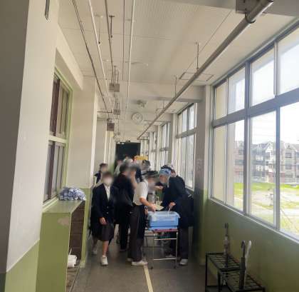 給食の準備はどの学年早くなってきました。いっぱい食べて、昼からの授業に備えましょう。