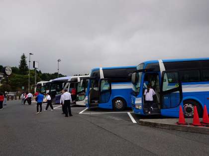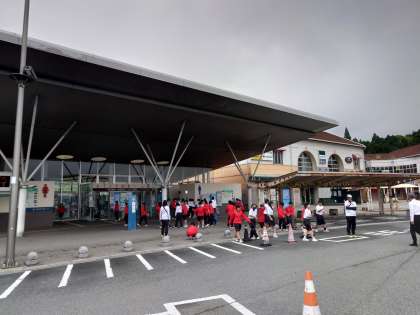 一泊移住に向かう1年生を乗せたバスはトイレ休憩場所の針テラスに到着しました。