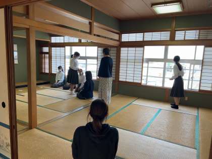 和室では茶道部が先生や指導員の方にレッスンを受けていました。