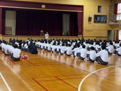 本日の定例の集会は3年生です。いつものことながら遅刻者が少なく、落ち着いた雰囲気で集会がありました。